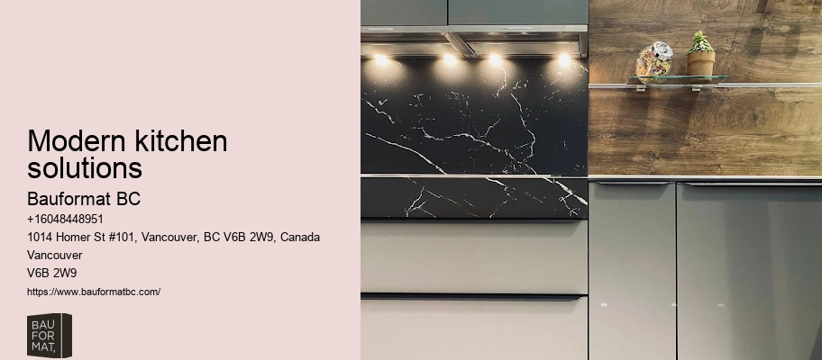 The installation process is meticulous, requiring precision and attention to detail. From eco-friendly materials to smart storage solutions, they're designed to make your life easier. Learn more about Bauformat BC here. So, when you're cooking in your kitchen, you're surrounded by the quality that doesn't cut corners on environmental responsibility. Find out more Modern kitchen solutions here Bauformat BC takes a holistic approach, considering every aspect of your living space to ensure a seamless and stylish design throughout your home.