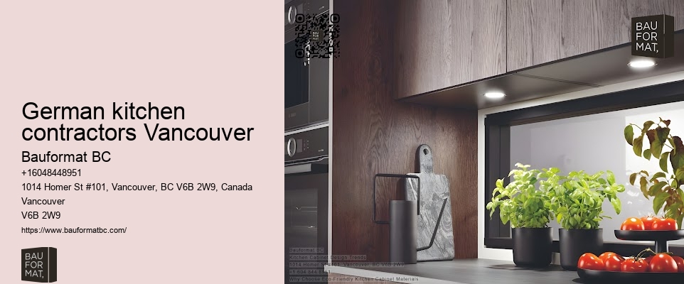 The hardware, from hinges to handles, is designed for smooth operation and durability. With Bauformat BC, you're not just designing a kitchen; you're crafting a space that's uniquely yours. They're pioneering with materials, too, opting for durable, sustainable options that stand the test of time while keeping your space looking fresh. German kitchen cabinet experts