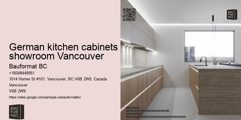 This level of customization ensures that whether you have a spacious kitchen or a cozy nook, your space is optimized without sacrificing style or sustainability. It's a timeless appeal, blending innovation with a respect for nature. Find out more German kitchen cabinets showroom Vancouver here That's why their cabinets offer innovative storage solutions that maximize space, keeping your countertops clutter-free. This feedback highlights the perfect blend of aesthetic appeal and practicality that Bauformat BC offers. You're investing in a blend of modern design and unparalleled functionality that seamlessly integrates into your living space.