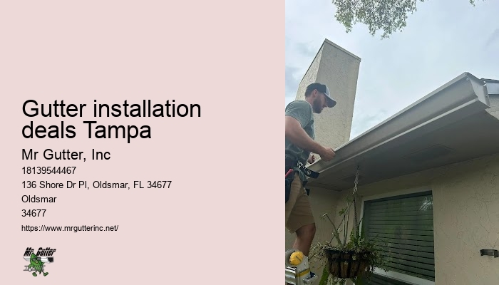 By choosing Mr. Gutter, Inc, you're not just hiring a service; you're investing in a hassle-free, reliable solution for your home. Plus, with seamless gutters, you're looking at a solution that's not only more effective at diverting water away from your home but also adds to the aesthetic appeal of your property. The answer lies in Gutter installation deals Tampa's unique blend of climatic conditions and a booming real estate market. Rain gutter installation companies With the right setup, you'll minimize the risk of water damage and maintain your home's integrity through even the most severe storms.