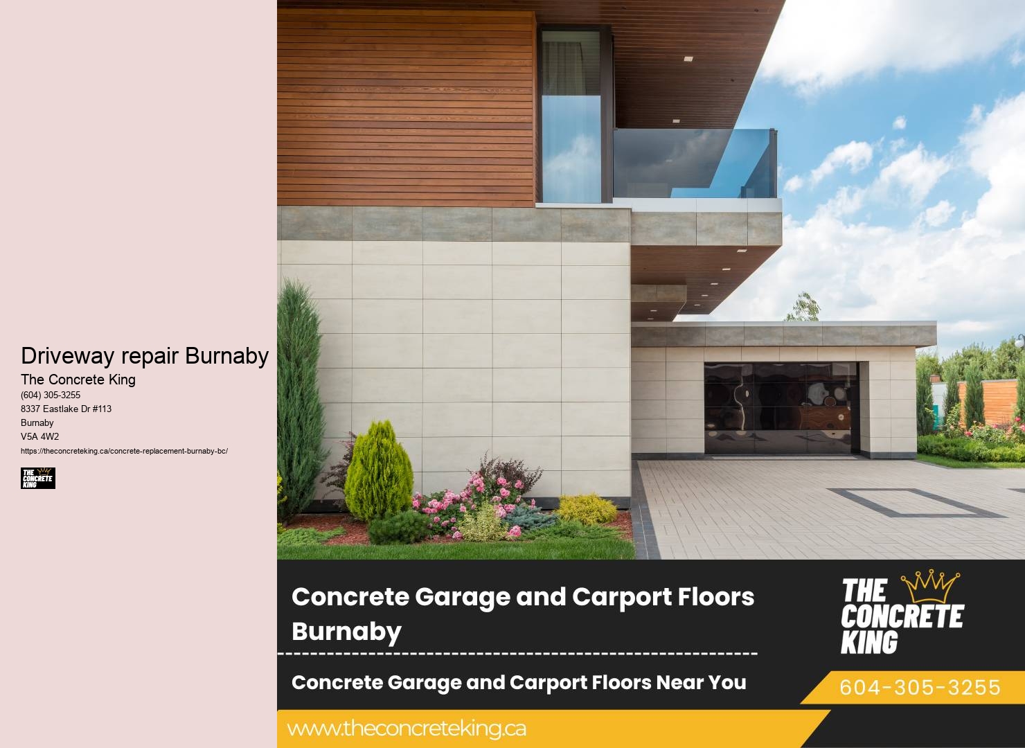 This simple act removes debris and prevents stains from setting in. Learn more about Driveway repair Burnaby here Concrete King prides itself on transparency, so you won't encounter any hidden fees or unexpected costs. Learn more about The Concrete King of Burnaby here. After the Concrete King of Driveway repair Burnaby has expertly replaced your driveway, it's time to personalize it. Once you've made contact, they'll schedule a convenient time to visit your property.